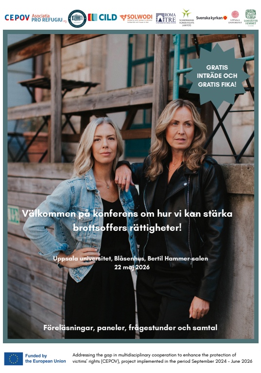 Under dagen samlas jurister och andra yrkesverksamma från Sverige, Rumänien, Italien och Tyskland för att diskutera bland annat tillgång till rättsligt stöd, kommunikation med brottsoffer och tvärprofessionellt samarbete. Konferensen äger rum kl. 09.00–17.00 på Uppsala universitet, Blåsenhus, Bertil Hammer-salen, men kan även följas digitalt via Zoom. Programmet innehåller presentationer, paneldiskussioner och möjlighet till frågor. Evenemanget genomförs med stöd från Europeiska kommissionen och riktar sig till alla som arbetar med eller är intresserade av brottsoffers rättigheter.
